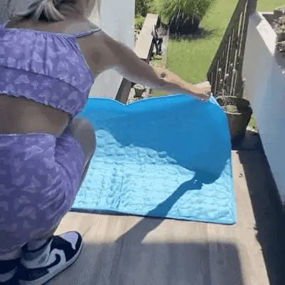 O tapete pode ser colocado na geladeira por alguns minutos. O tecido retém a temperatura fria, criando uma superfície mais fresca para seu pet descansar.